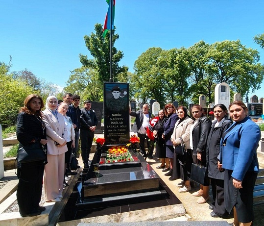 Daha sonra tədbir şəhidin məzarı önündə davam etdirilib. İştirakçılar şəhidin məzarını ziyarət edərək önünə gül dəstələri düzüb, ruhuna dualar oxuyublar.