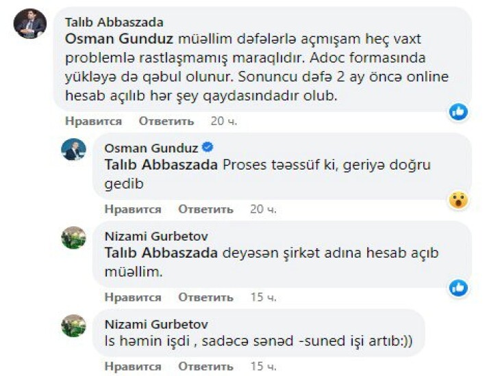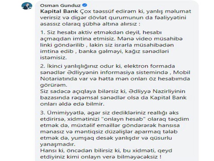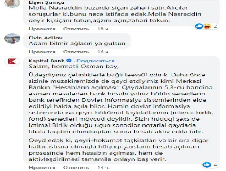 Qayıtdılar ki, Mərkəzi Bankın yeni Qaydaları var və bizdən belə tələb edilir. İnanmadım, dirəşdim ki, mən bunu ictimailəşdirəcəyəm. Dedilər ki , qaydalar belədir və okeydir 🙂