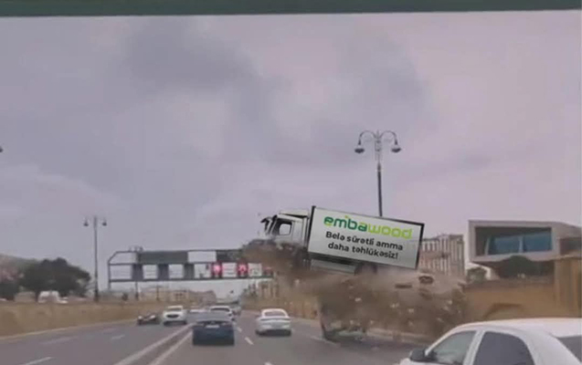 Mebel satışı ilə məşğul olan “Embawood” qəzadan görüntüləri montaj edərək “Belə sürətlə, həm də təhlükəsiz - sifarişiniz ən qısa zamanda qapınızda!” başlığı ilə paylaşıb.