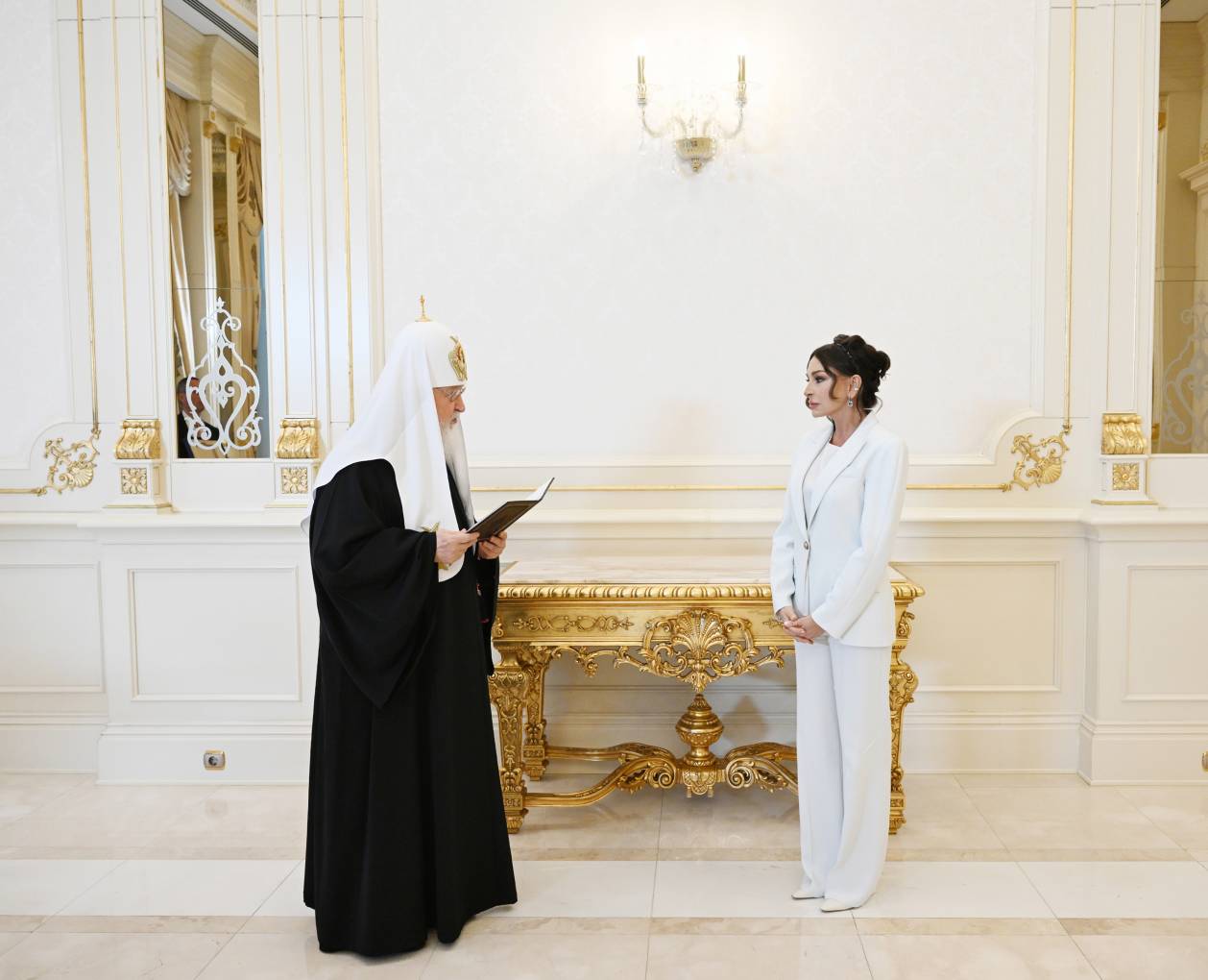 Sonra Moskvanın və Bütün Rusiyanın Patriarxı Kirill Rus Pravoslav kilsəsinin I dərəcəli “Müqəddəs Knyaginya Olqa” ordenini Azərbaycan Respublikasının Birinci vitse-prezidenti və Heydər Əliyev Fondunun prezidenti Mehriban Əliyevaya təqdim etdi.
