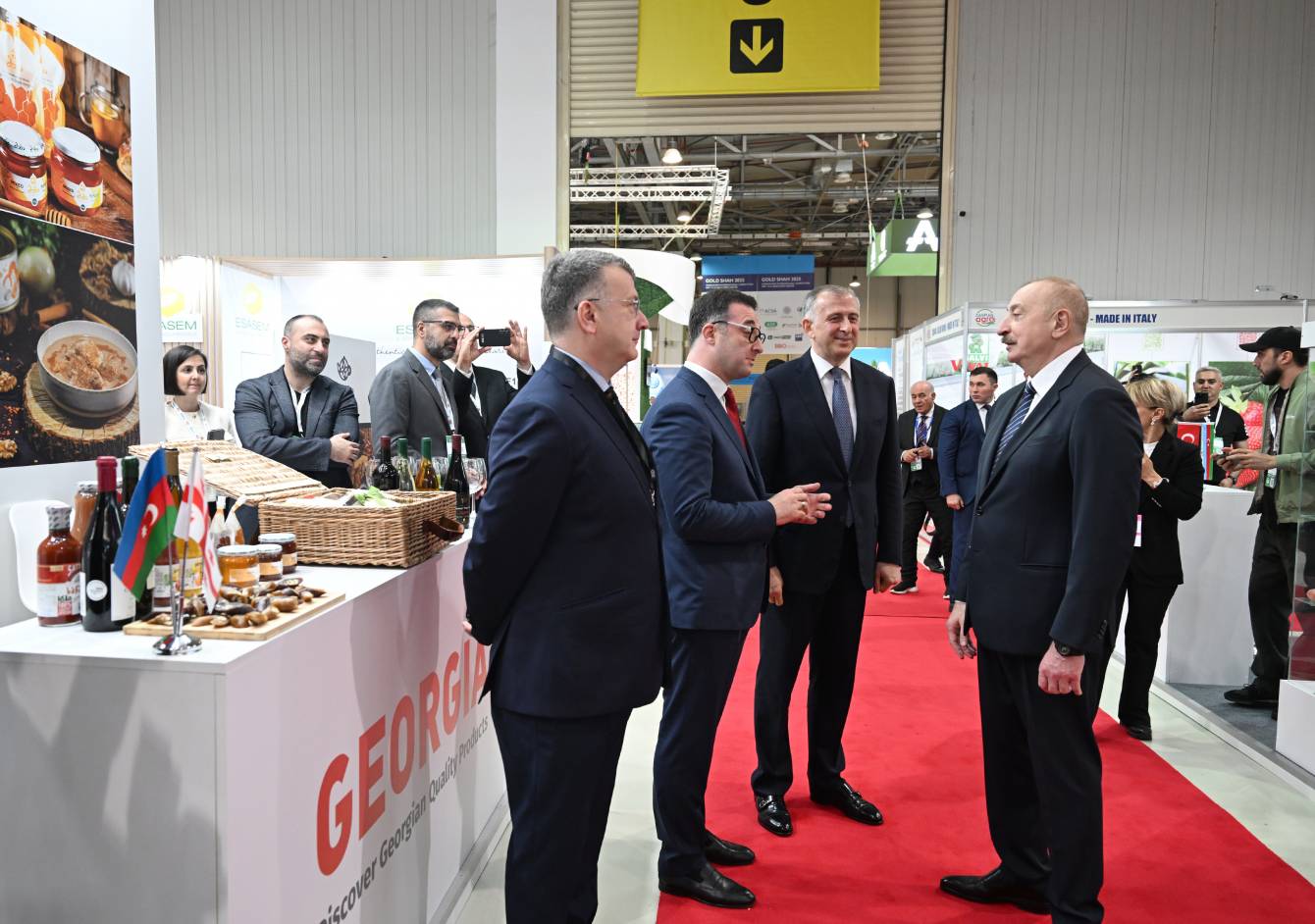 Dövlətimizin başçısı İtaliyanın stendi ilə tanış oldu. “İtaliya Respublikasının Milli Qrupu”nda ümumilikdə 7 şirkət təmsil olunur. Onlar müxtəlif kənd təsərrüfatı məhsullarını təqdim edirlər. İtaliya bu sərgilərə böyük maraq göstərən ölkələrdəndir. Odur ki, bu ölkə 10 ildən çoxdur ki, sərgilərdə iştirak edir.