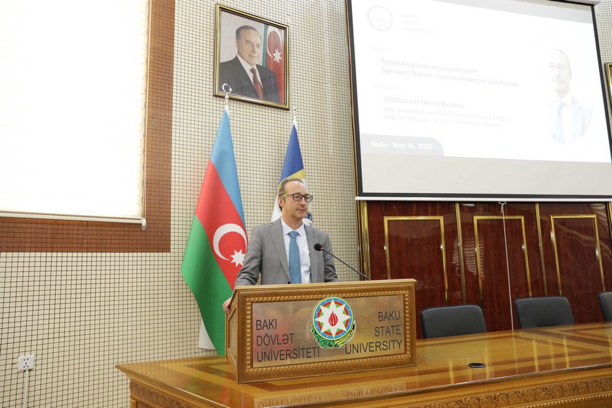 В Бакинском государственном университете (БГУ) состоялась встреча профессорско-преподавательского состава и молодых исследователей с вице-президентом по Восточной Европе издательства Springer Nature Александром Бирюковым.