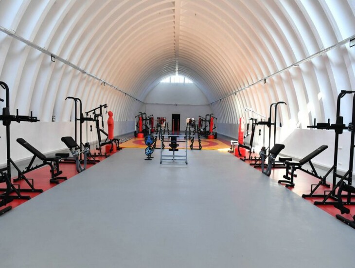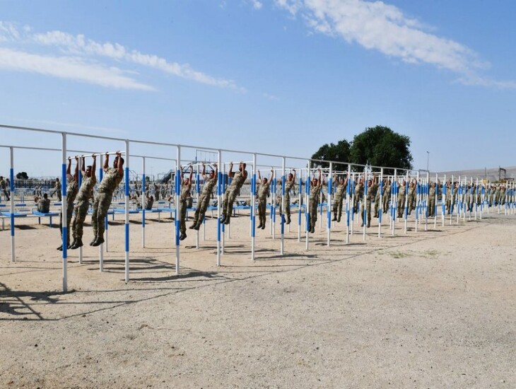 Hərbi hissədəki açıq idman şəhərciyində isə güc məşğələlərinin icrası üçün avadanlıqlar, dözümlülüyün artırılması məqsədilə maneələr zolağı, eləcə də futbol, voleybol, uzunluğa və hündürlüyə tullanma meydançaları yaradılıb. Ali Baş Komandan burada komandoların intensiv hazırlıq məşqlərini izlədi.