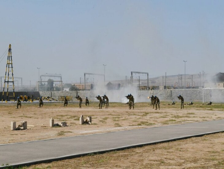 Bundan sonra Ali Baş Komandana komando bölmələrinin silahlanmasında olan kiçik və iriçaplı silahlar, zirehli avtomobil və xüsusi texnika, o cümlədən artilleriya, kəşfiyyat, mühəndis, rabitə və digər döyüş vasitələri, eləcə də zərbə dronları və müxtəlif təyinatlı pilotsuz uçuş aparatları nümayiş etdirildi.