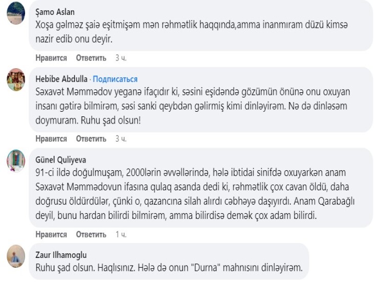 Bu gün Ağdamın fəxri, Azərbaycanın sevilən müğənnisi Səxavət Məmmədova saatlarla qulaq asmışam. Səsin sehrinə düşmüş idim. Səxavət Məmmədov sözün əsl mənasında Kişi deyiləcək şəxslərdən biri idi.