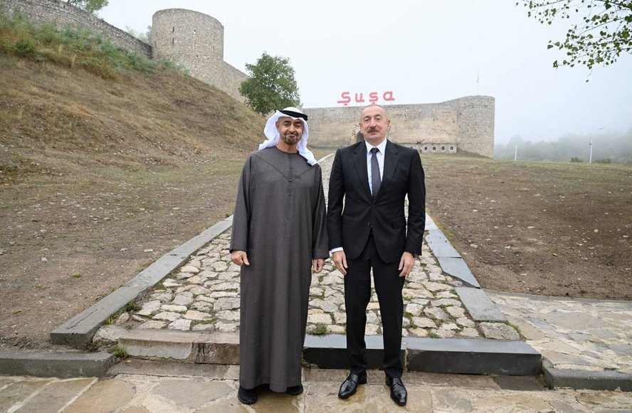 Sentyabrın 16-da Azərbaycan Respublikasının Prezidenti İlham Əliyev və Birləşmiş Ərəb Əmirliklərinin Prezidenti Şeyx Məhəmməd bin Zayed Al Nəhyan Şuşa qalasının önündə foto çəkdiriblər.