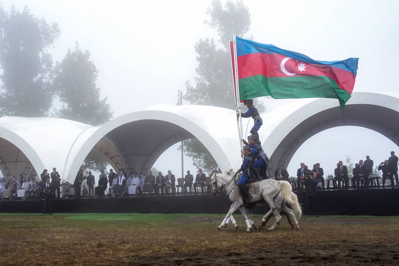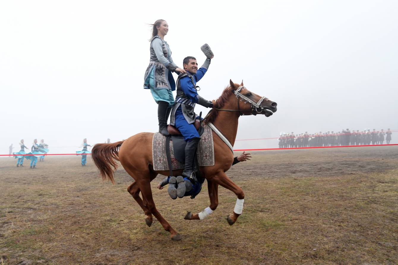 Prezidentlər İlham Əliyev və Şeyx Məhəmməd bin Zayed Al Nəhyan Cıdır düzündə Qarabağ atlarının şousunu izləyiblər
