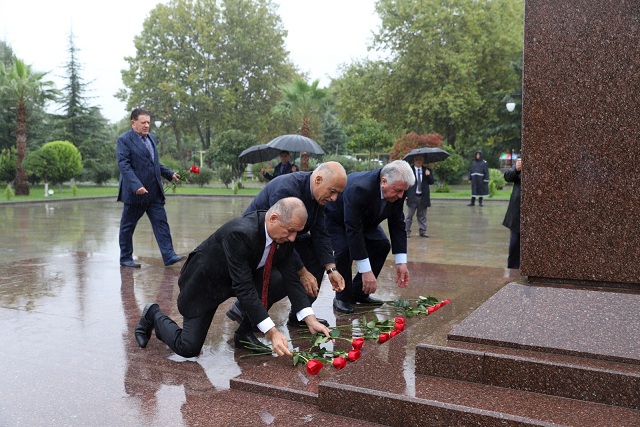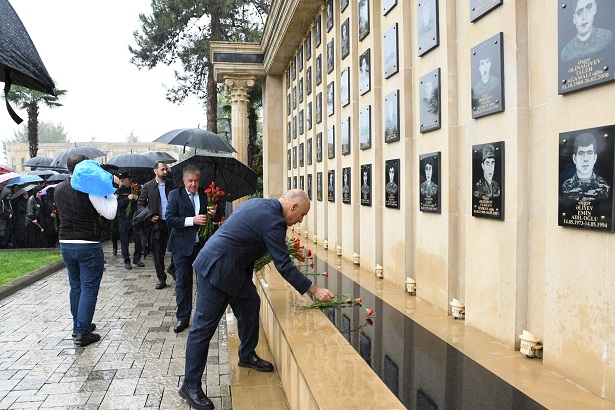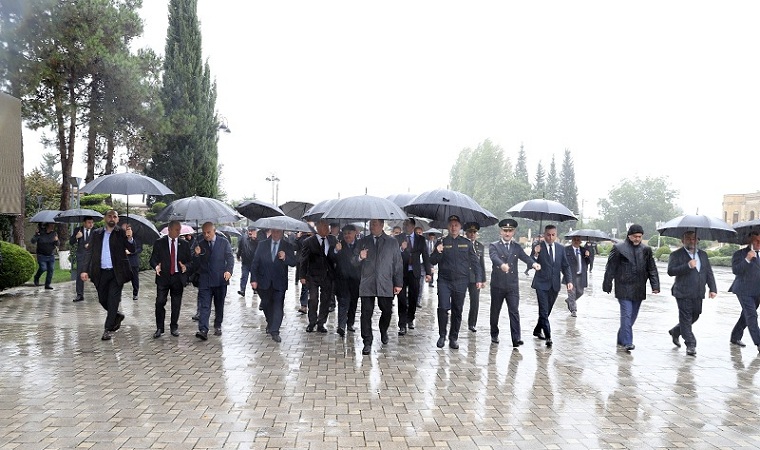İştirakçılar əvvəlcə “Qəhrəmanlar Parkı”nda yerləşən “Şəhidlər” abidə-kompleksini ziyarət edərək Vətən uğrunda canlarından keçmiş qəhrəmanların əziz xatirəsini ehtiramla anıblar, abidə önünə gül dəstələri düzüblər. Daha sonra Ümummilli Lider Heydər Əliyevin abidəsi ziyarət olunub, abidə önünə gül dəstələri qoyularaq dahi şəxsiyyətin xatirəsinə dərin hörmət ifadə olunub.