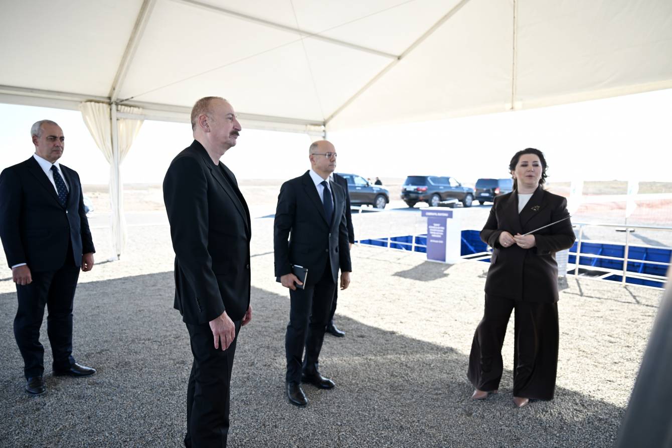 İlham Əliyev Cəbrayıl rayonunun Şahvəlli kəndində “Şəms” və “Üfüq” Günəş Elektrik stansiyalarının təməlini qoyub