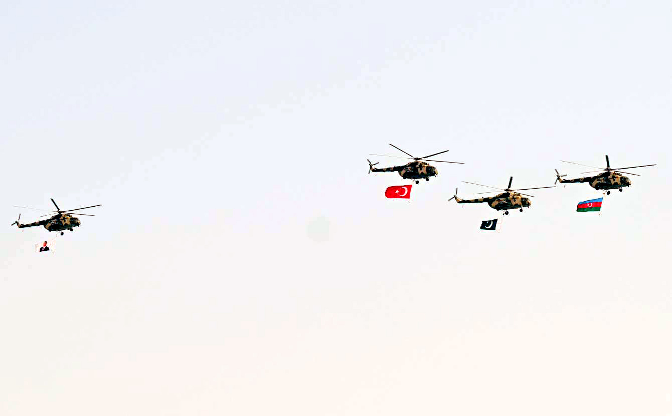 Azərbaycan Respublikasının Prezidenti İlham Əliyev, birinci xanım Mehriban Əliyeva, Türkiyə Respublikasının Prezidenti Rəcəb Tayyib Ərdoğan, Pakistan İslam Respublikasının Baş naziri Məhəmməd Şahbaz Şərif paradda iştirak ediblər.