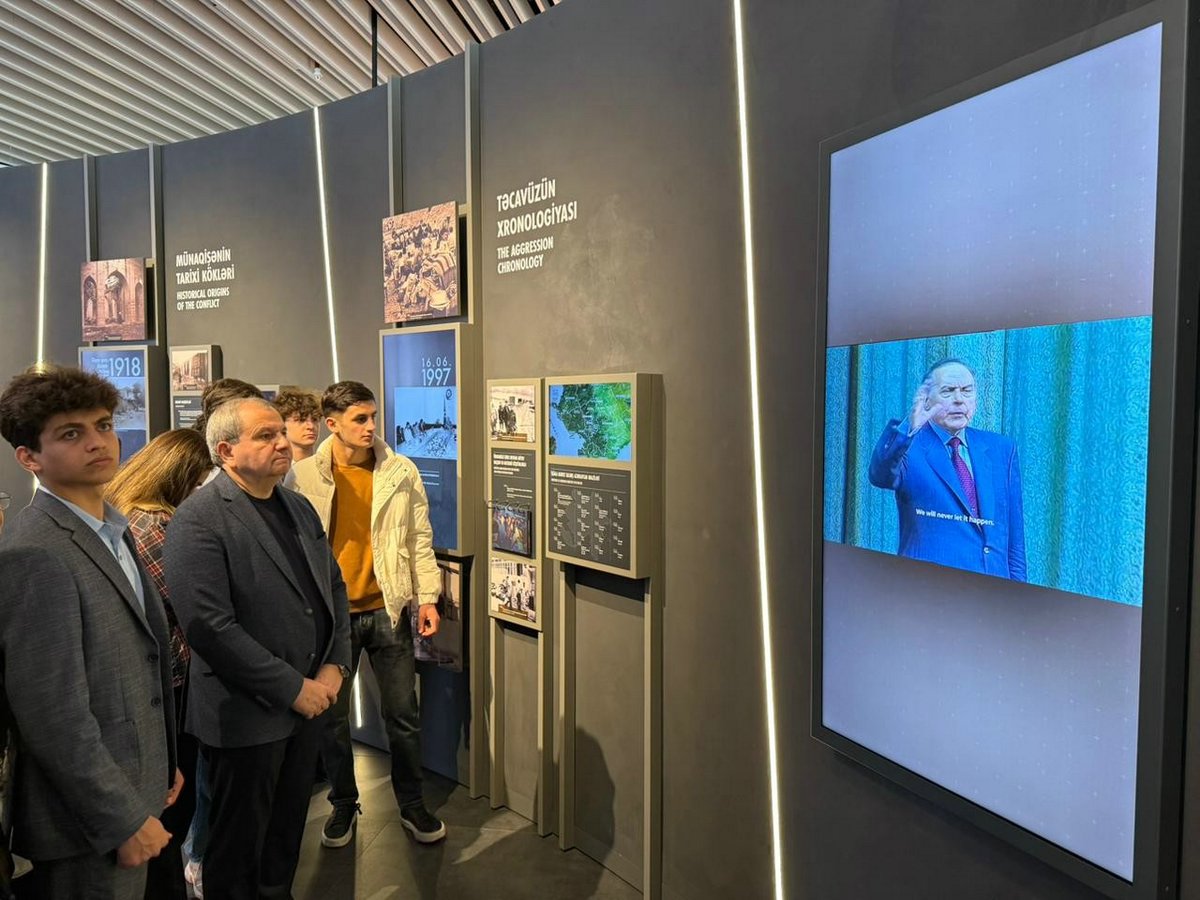Muzeydə ziyarətçilər LED monitorlarda süni intellektlə hazırlanmış videomateriallar vasitəsilə 44 günlük döyüşlərin gedişatı, döyüş əməliyyatları, hərbi nailiyyətlər və Ermənistan silahlı qüvvələrinin mülki əhaliyə qarşı törətdiyi hücumlarla bağlı faktlarla tanış olublar.