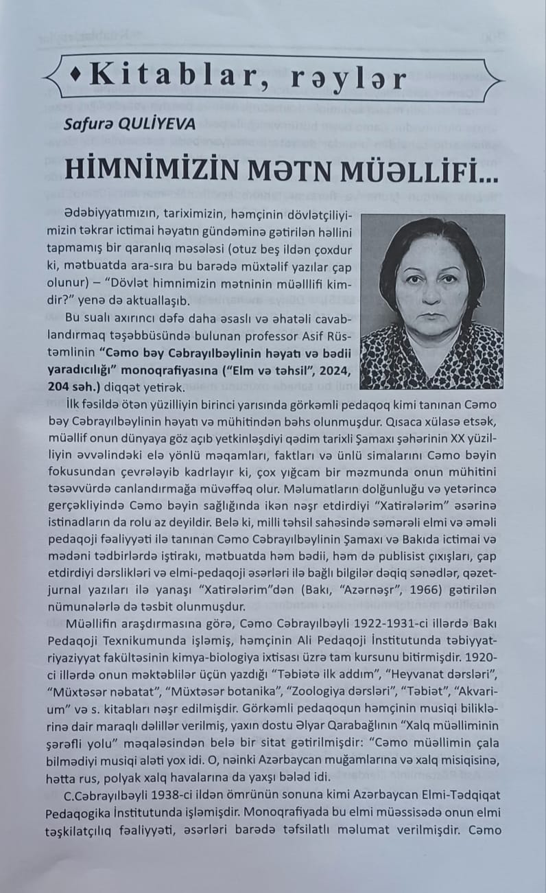 Bu sualı axarıncı dəfə daha əsaslı və əhatəli cavablandırmaq təşəbbüsündə bulunan professor Asif Rüstəmlinin “Cəmo bəy Cəbrayılbəylinin həyatı və bədii yaradıcılığı” monoqrafiyasına (“Elm və təhsil”, 2024, 204 səh.) diqqət yetirək.
