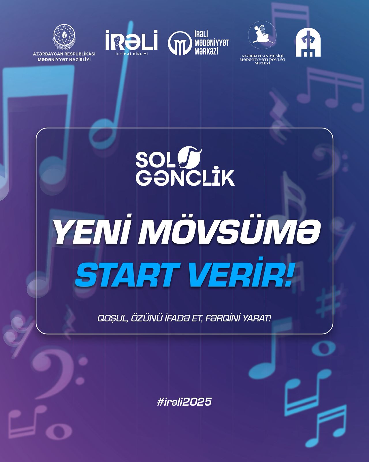 “İRƏLİ” Mədəniyyət Mərkəzinin təşkilatçılığı, “Artefakt” təşəbbüs qrupunun tərəfdaşlığı və Azərbaycan Musiqi Mədəniyyəti Dövlət Muzeyinin dəstəyi ilə keçirilən “Solo Gənclik” layihəsi yeni mövsümə başlayır.