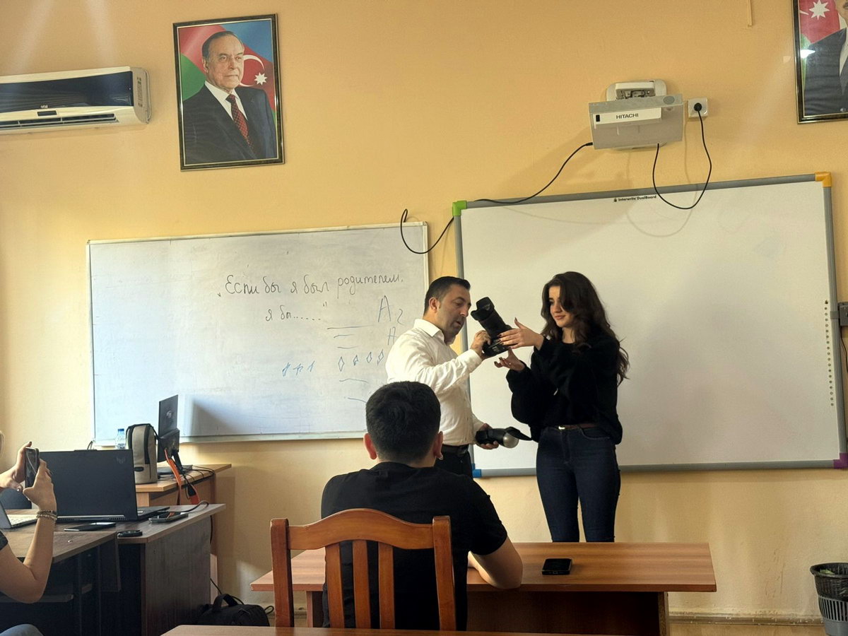 Sonda fotoqraf R.Fərman fotokamera ilə davranış qaydaları, fon, effekt, işıq, rəng, kompozisiya ilə bağlı tələbələrə praktik bilgilər verib, hər bir tələbə fotokameradan istifadə edərək bu prinsiplərə uyğun fotolar çəkiblər.